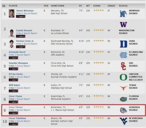 2019年德鲁高中毕业,ESPN综合评分88分四星高中生,在全美同位置中锋中排名第9,而当届排名第1的潜力中锋是大聪明怀斯曼,第2是莽牛斯图尔特,德鲁收到全美多所D1级大学招募,最终选择加盟冈萨加大学。