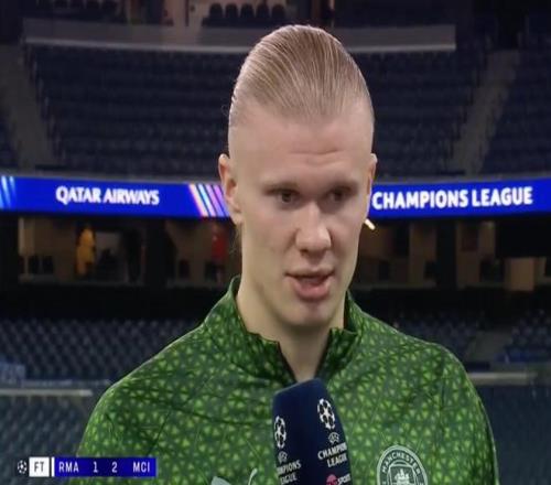 在欧冠客场2-1击败皇家马德里后,曼城前锋哈兰德接受了TNT体育的采访。