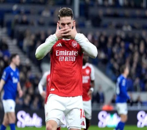 主场作战的埃弗顿深知自身实力不如阿森纳,莫耶斯的球队果断摆出防守反击姿态;第20分钟,廷贝尔右路底线回敲,厄德高顺势传中,哲凯赖什背对球门头球攻门稍稍偏出;第27分钟,赖斯角球罚到门前,奥布赖恩高高跃起一个排球动作明显手球犯规,阿森纳获得点球;厄德高让出点球权,哲凯赖什点射命中,1:0!自2023-24赛季以来,哲凯赖什在联赛19次主罚点球全部命中。