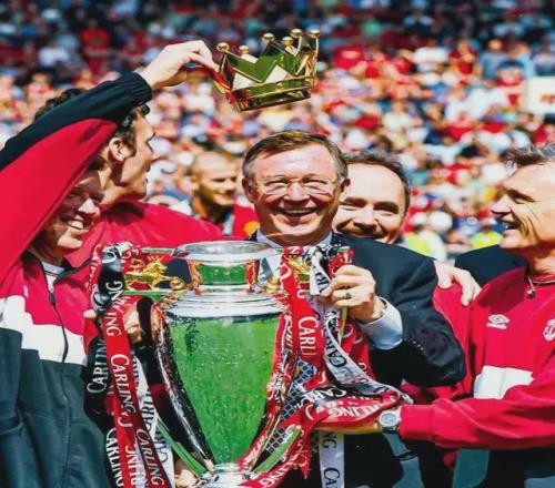 比赛结束了!弗格森治下的曼联,赢得队史第一座欧冠奖杯,也成为五大联赛第一支三冠王球队。