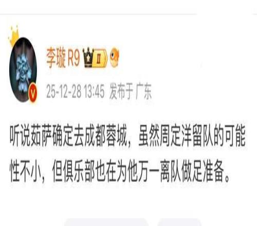 中超今年各队互相挖角,成都蓉城的后卫李扬和海港联系在了一起,成都和海港后腰茹萨产生联系。上个赛季,成都的策略也是从中超球队挖人,只不过看走眼了,引进了降级队的外援卡隆,结果来了就伤了,夏窗也没有相应的补强,错过了夺冠的好机会。明年韦世豪、罗慕洛和费利佩等进攻核心将会留队,主力攻击阵容稳定,主要在于中后场的人员流失。
