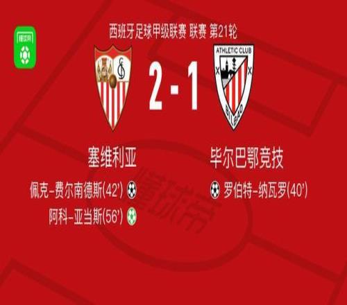 塞维利亚21逆转毕尔巴鄂竞技,阿科亚当斯点射破门,佩克费尔南德斯建功